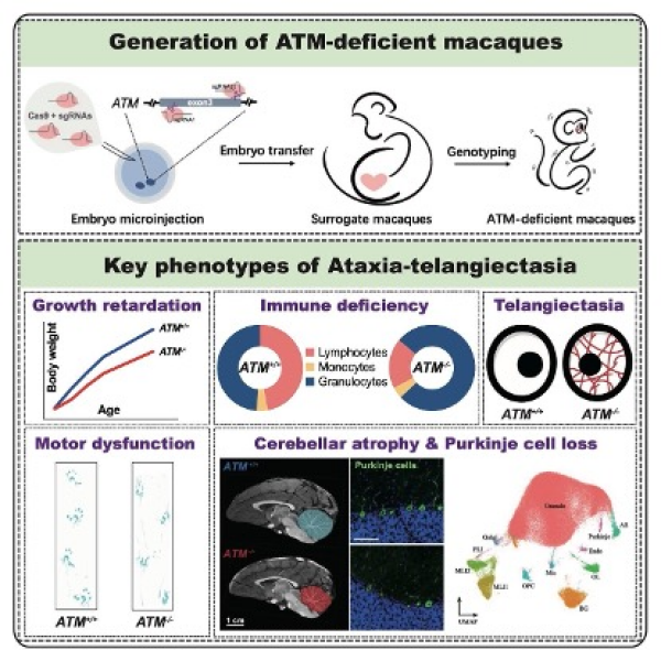 研究建立模拟人类神经退行性疾病A-T的非人灵长类模型