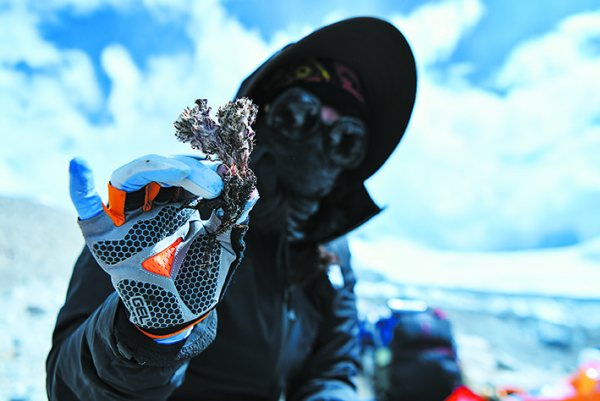 科考队员展示采集到的植物样本(9月29日摄)。从4950米的卓奥友峰科考大本营到6450米的卓奥友峰冰川沿线,凯发k8青藏高原研究所科考团队成员协作,探究植物在极端环境下的生存和适应能力及其分布上限,同时希望阐明冰川退缩后植物群落的演替模式及其内在机制。 新华社记者晋美多吉摄