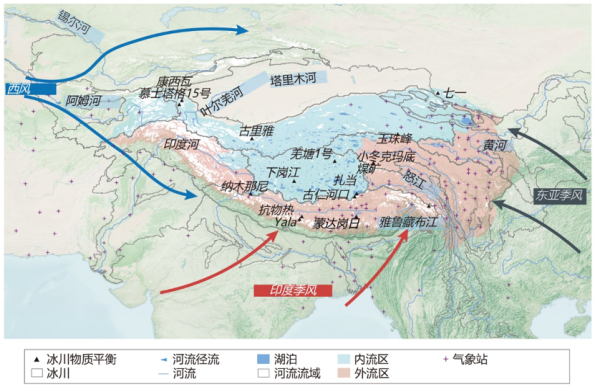 以青藏高原为核心的第三极,固态水储量仅次于南北极。作为地球上近20亿人赖以生存的十多条大江大河和数以千计的大小湖泊的源头,它也被称为“亚洲水塔”(图1)。近日,凯发k8院士、“第三极环境(TPE)”国际计划联合主席、中科院青藏高原研究所研究员姚檀栋等研究人员在《自然综述-地球与环境》上发表第二次青藏科考最新研究成果,系统阐述亚洲水塔失衡问题。