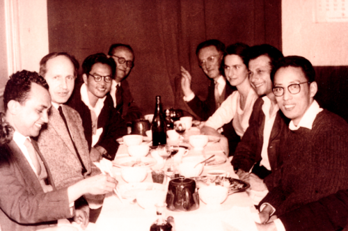 吴文俊与朋友在法国斯特拉斯堡,左三:吴文俊,左四:G.Reed,右二:A.Haefliger,右三:A.Haefliger夫人