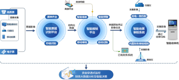 自动化所智能财务团队深入财务及专项资金管理业务研究,将人工智能技术与财务业务融合,研发出云端智能财务共享服务平台。该平台解决了全票据的语义内容自适应识别与提取、基于显性知识和隐性知识的内控智能审核和大数据驱动的财务状况及经费管理决策模型等技术难题,由智能票据识别平台、智能报销平台和智能收票审核系统组成,可灵活配置业务模块,一方面解决了员工报销难的问题,另一方面通过资金穿透式监管服务提升了财务管理水平。使用人员只需通过手机把原始票据拍照上传到平台,向平台发出报销申请指令,系统会自动从票据影像或相关平台抓取所需数据,自动完成记账凭证生成、票据真伪查询、内控审核等功能,实现随时随地无纸化便捷报销。