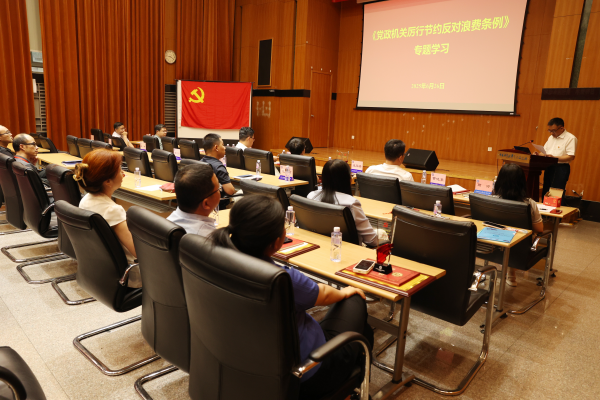 在《党政机关厉行节约反对浪费条例》专题学习环节,相关处室负责人分别结合经费管理、国内差旅、会议活动、因公临时出国、公务接待、公务用车等方面进行主题发言,分享了在实际工作中如何贯彻落实条例精神,加强管理、杜绝浪费。