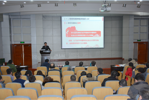 党委书记、副院长谢铭围绕深入学习宣传贯彻席大大新时代中国特色社会主义思想和党的十九大精神,密切联系西北研究院改革创新发展实际,作了题为《落实党建“八管”,服务改革创新》的党课报告。从“领会贯彻思想和精神,学懂弄通做实与见效”、“落实党建‘八管’要求,促进改革创新发展”和“‘八管’具体二三事”三个方面交流了学习体会、理解认识,传达了中科院召开的相关会议精神,通报了相关事项。党委副书记兼纪委书记王萍总结了2017年党建与创新文化建设工作,通报分析了问题和不足,安排了2018年党建重点工作任务。